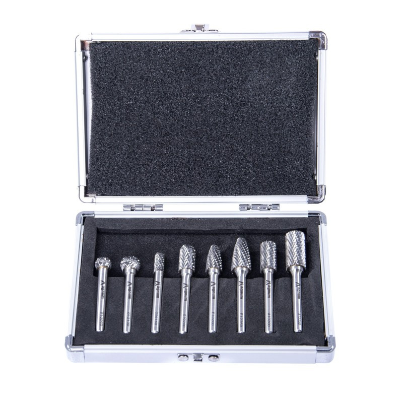 Zestaw pilników do metalu MAGNUM z węglika spiekanego VHM. Frezy ze stali szybkotnącej są zwykle używane do obróbki miękkiej stali, aluminium, brązu, mosiądzu itp. Wszystkie frezy posiadają średnicę chwytu 6 mm.