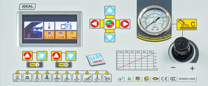 Wszystkie ustawienia zgrzewarki dostępne są z panelu sterowania. Po wyborze rodzaju narzędzia urządzenie samo dopasuje prąd zgrzewania i optymalne cykle pracy. Istnieje również możliwość ręcznego ustawienia czasu i prądu do zgrzewania.
