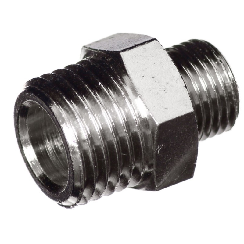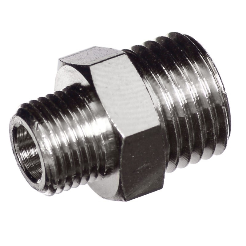 Złączka gwintowana z mosiądzu niklowanego umożliwia łączenie elementów instalacji pneumatycznych i hydraulicznych. Złączka cechuje się wysoką odpornością na działanie szkodliwych czynników takich jak wilgoć (wysoka odporność na korozję), oleje czy wysoka temperatura. Nadaje się do instalacji pneumatycznych, gazowych, wodnych i ciepłowniczych.