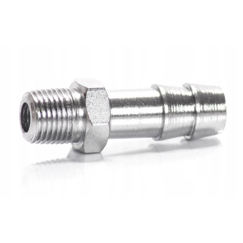 Złączka gwintowana z króćcem na wąż. Końcówka służy do łączenia przewodów z armaturą gwintowaną. Króciec na wąż może posiadać wymiar przekraczający średnicę nominalną przewodu. Ma to na celu ciasne spasowanie węża na złączce, zapobiegające wyciekom.